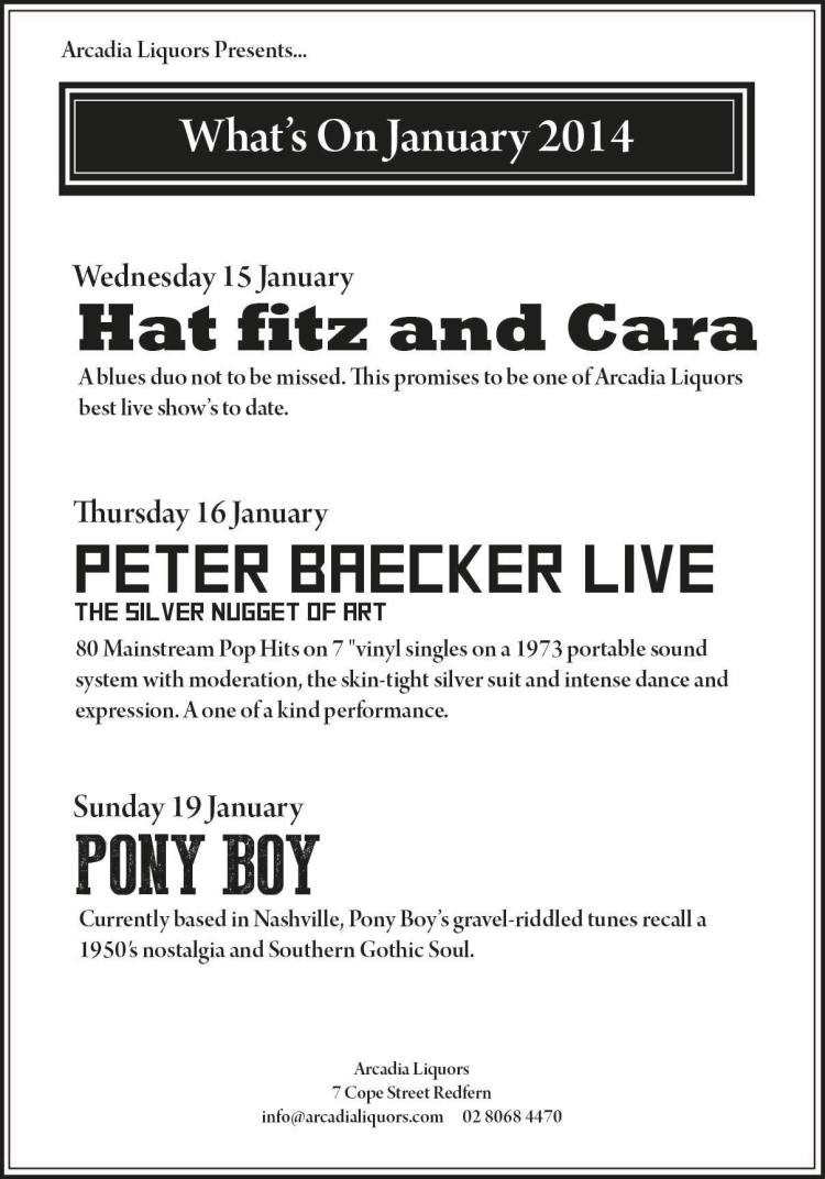 Peter Baecker plays LIVE every Thursday (until Apr.10) at Arcadia Liquors, 7 Cope Street Redfern 2016 (On the corner of Regent and Redfern Streets).