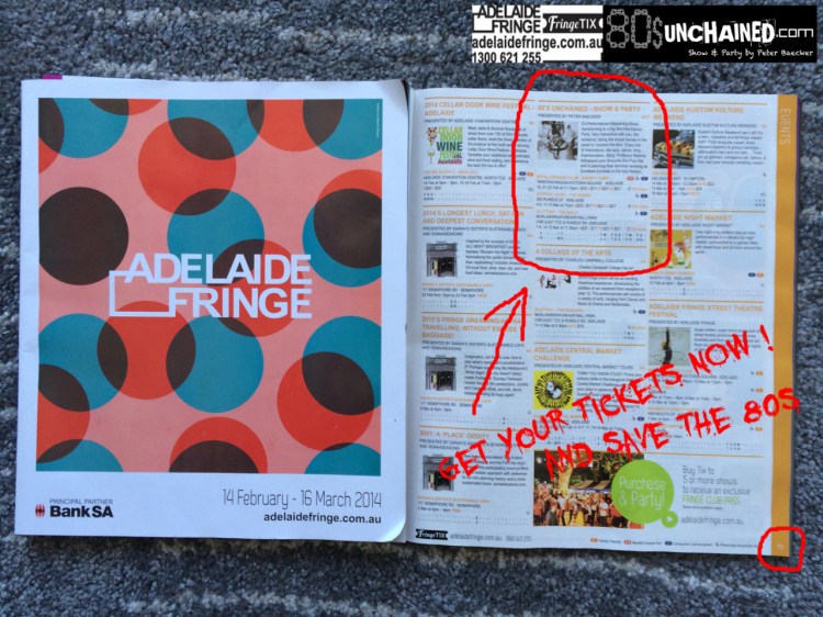 Brand new Flyer and Poster for my Show 80sUnchained starting this Sat. Feb. 15th @ Royal Croquet Club, for the Adelaide Fringe Festival 2014. Both proudly as bilingual Edition Kaurna and English.